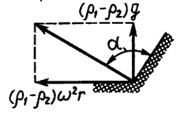 Указание. Легкие включения могут перемещаться к центру формы лишь в том случае, если равнодействующая архимедовой и центростремительной сил будет иметь составляющую, направленную вдоль стенки вниз, т. е. если α≥90°.