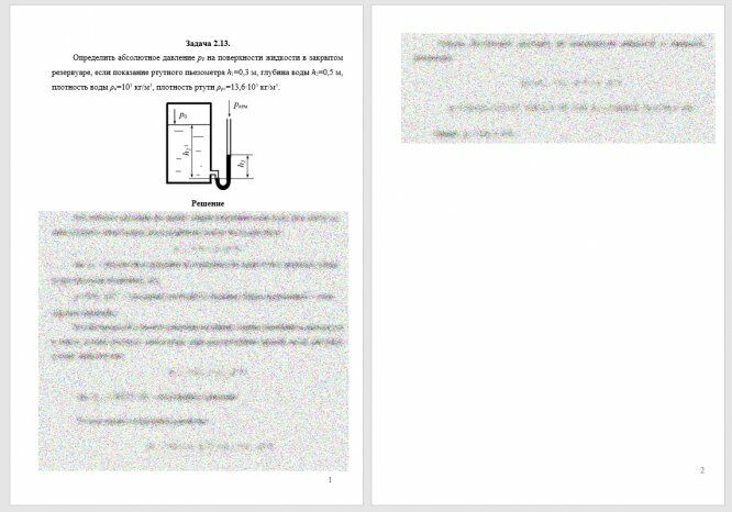 Для студентов САФУ им. Ломоносова по предмету Механика жидкости и газа (МЖГ или Гидравлика)Определить абсолютное давление р0 на поверхности жидкости в закрытом резервуаре, если показание ртутного пьезометра h1=0,3 м, глубина воды h2=0,5 м, пОпределить абсолютное давление р0 на поверхности жидкости в закрытом резервуаре, если показание ртутного пьезометра h1=0,3 м, глубина воды h2=0,5 м, п