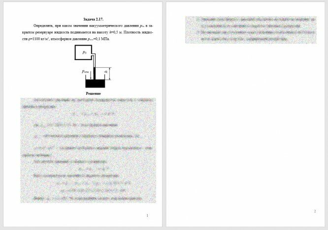 Для студентов САФУ им. Ломоносова по предмету Механика жидкости и газа (МЖГ или Гидравлика)Определить, при каком значении вакуумметрического давления р0в в закрытом резервуаре жидкость поднимается на высоту h=0,5 м. Плотность жидкости ρ=1100Определить, при каком значении вакуумметрического давления р0в в закрытом резервуаре жидкость поднимается на высоту h=0,5 м. Плотность жидкости ρ=1100