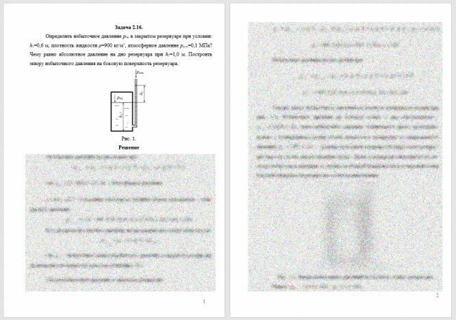 Главная » Учебные материалы » Механика жидкости и газа (МЖГ или Гидравлика) » Решения задач » САФУ им. Ломоносова » Несколько классов/семестров » Номер 2 » Вариант 16 » Определить избыточное давление р0и в закрытом резервуаре при усло-вии: h1=0,6 м, плотность жидкости ρ=900 кг/м3, атмосферное давление ратм=0,1 МПа? Чему равно абсолютное давление на дно резервуара при h2=1,0 м. По-строить эпюру избыточного давления н