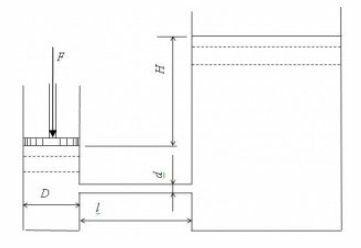 Главная » Учебные материалы » Механика жидкости и газа (МЖГ или Гидравлика) » Решения задач » Несколько классов/семестров » Поршень диаметром D=280 мм движется равномерно вниз в цилиндре, подавая жидкостъ – воду в от­крытый резервуар с постоянным уровнем. Диаметр трубопровода d=90 мм, его длина l=15 м. Когда поршень находится ниже уровня жидкости в резервуаре на Н=5 м пот