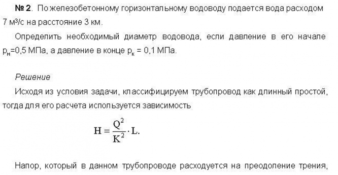 По железобетонному горизонтальному трубопроводу пошлется вода расходом 7 м3/с на расстояние 3 км. Определить необходимый диаметр водовода, если давление в его начале рн = 0,5 МПа. а давление в конце рв = 0.1 МПаДЕМО