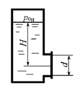 Определить избыточное давление р0и в закрытом резервуаре при усло-вии: h1=0,6 м, плотность жидкости ρ=900 кг/м3, атмосферное давление ратм=0,1 МПа? Чему равно абсолютное давление на дно резервуара при h2=1,0 м. По-строить эпюру избыточного давления н