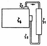 Главная » Учебные материалы » Механика жидкости и газа (МЖГ или Гидравлика) » Решения задач » Несколько классов/семестров » Номер 4 » Вариант 8 » Определить потери напора в системе охлаждения двигателя внутреннего сгорания (рис. 4.5), включающей в себя центробежный насос, радиатор (ξ1=5), термостат (ξ2=3), трубопроводы (ξ3=1,5) и водяную рубашку двигателя (ξ4=4,5), если расход воды Q=4,2 л/с.