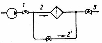 Определить подачу насоса и давление р1 которое он создает в начале трубопровода 1 (рис. 5.11), если расход масла (ρ=880 кг/м3, ν=12 мм2/с) в трубопроводе 2΄ равен (Q2΄=1,5 л/с, длины и диаметры трубопроводов соответственно равны l1=2,5 м, d1=25 мм, l2=1,4 м, d2=16 мм, l2΄=3,2 м, d2΄=20 мм, l3=1,5 м, d3=32 мм. Учесть коэффициенты местных сопротивлений фильтра (ζф=10), вентилей (ζв=5,0),и колен (ζк=0,5), давление в конце трубы 3 атмосферное.