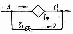 Главная » Учебные материалы » Механика жидкости и газа (МЖГ или Гидравлика) » Решения задач » Несколько классов/семестров » Номер 5 » Вариант 9 » Насос подает к узлу А постоянный расход жидкости Q=30 л/мин (рис. 5.12, а). Пренебрегая потерями давления на трение в трубопроводах, построить график зависимости расхода Q жидкости через фильтр (ζф=10) от коэффициента сопротивления вентиля ζв. При ка