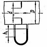 Пропускная способность модели диафрагмы, предназначенной для измерения расхода масла, исследуется в лабораторных условиях на воде (ρ1=1000 кг/м3, ν1=1 мм2/с). Диаметр трубы на модели D1=40 мм, диаметр отверстия диафрагмы d1=15 мм, масштаб модели 1:5 (рис. 8.2). Каким должен быть расход воды в модели Q1 для соблюдения подобия (Rе1=Rе2), если расход масла (ρ2=890 кг/м3, ν2=10 мм2/с) Q2=50 л/с? Какими будут потери давления на диафрагме в натуре, если показание ртутного дифференциального манометра на модели h1=285 мм?