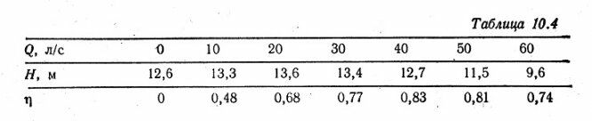 Характеристика насоса при n1=900 мин-1 дана в табл. 10.4.