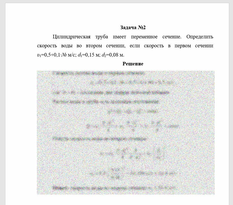 Для студентов по предмету Механика жидкости и газа (МЖГ или Гидравлика)Цилиндрическая труба имеет переменное сечение. Определить скорость воды во втором сечении, если скорость в первом сечении υ1=0,5+0,1∙№ м/с; d1=0,15 м;Цилиндрическая труба имеет переменное сечение. Определить скорость воды во втором сечении, если скорость в первом сечении υ1=0,5+0,1∙№ м/с; d1=0,15 м;