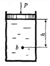 Главная » Учебные материалы » Механика жидкости и газа (МЖГ или Гидравлика) » Решения задач » Несколько классов/семестров » Номер 3 » Вариант 2 » Определить абсолютное и избыточное давление в точке b на глубине h, если диаметр поршня d=0,2 м, а сила, действующая на поршень, P. Плотность жидкости ρ=850 кг/м3. Дано: h=4 м, P=5 кH.