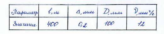 Определить эквивалентную шероховатость трубопровода, если известно число Рейнольдса, коэффициент Дарси, внутренний диаметр трубы. Данные представлены в таблице.