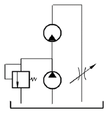 Определить момент Mм, развиваемый гидромотором, полезную мощность Nм и частоту вращения nм вала гидромотора, если давление насоса равно pн=4,0 МПа, перепад давления на гидромоторе ∆pм=3,8 МПа, подача насоса Qн=0,2∙10-3 м3/с, рабочий объем гидромотора qм=35∙10-6 м3. Механический и объемный КПД гидромотора соответственно ηм.м=0,9, ηм.о=0,92. Потери напора в гидролиниях не учитывать. Плотность рабочей жидкости ρм=800 кг/м3. Площадь проходного отверстия дросселя ωдр=10∙10-6 м2, коэффициент расхода дросселя μдр=0,6.