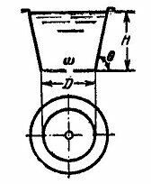Сосуд, имеющий форму усеченного конуса, поставлен вертикально на меньшее основание с диаметром D (рис. 3-32). Определить (в общем виде) время t опорожнения сосуда через отверстие ω, расположенное в основании.
