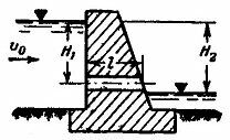 Главная » Учебные материалы » Механика жидкости и газа (МЖГ или Гидравлика) » Решения задач » Несколько классов/семестров » Номер 3.15 » В теле железобетонной плотины проектируется водоспуск в виде трубы длиной l=5,0 м (рис. 3-15). Напор над водоспуском при свободном истечении равен H1=6,5 м. Разность отметок уровней воды в верхнем и нижнем бьефах плотины H2=15,0 м. Скорость подхода в