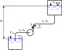 Центробежный насос, характеристика которого задана (табл.2), подает воду на геометрическую высоту Hг. Температура подаваемой воды T = 20C. Трубы всасывания и нагнетания соответственно имеют диаметр dв и dн, а длину lв и lн. Эквивалентная шероховатос