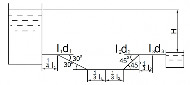 Главная » Учебные материалы » Механика жидкости и газа (МЖГ или Гидравлика) » Решения задач » ТвГТУ » Несколько классов/семестров » Номер 5.3.10 » Вариант 1 » Определить расход Q через заданную систему коротких трубопроводов (рис. 5.3.10). Построить линии потенциальной и полной удельных энергий, при данных, указанных в табл. 5.3.10.