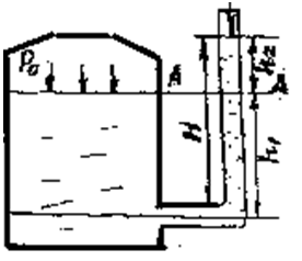 К закрытому резервуару для определения давления на свободной поверхности р0 присоединена стеклянная трубка. Спрашивается, какое давление в резервуаре р0,, если вода в трубке поднялась на высоту Н=3 м? Трубка присоединена на глубине h1 =2 м.