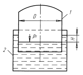 Колокол 1 газгольдера диаметром D весит G (рис. 2). Определить разность уровней Н под колоколом газгольдера и в его станине 2..