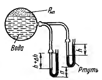 Давление на поверхности воды в резервуаре измеряется ртутным U-образным манометром. Как изменится показание (h, мм) манометра, если манометр переместить вниз на а мм?