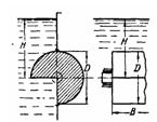 В прямоугольном окне вертикальной стенки резервуара установлен на цапфах цилиндрический затвор диаметром D = 0,8м и длиной В = 3м.