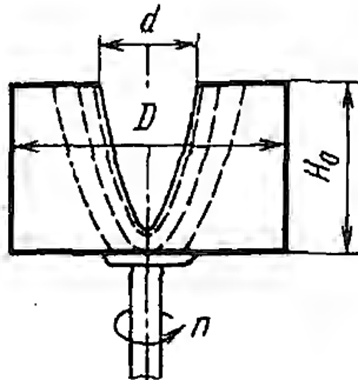 Цилиндрический сосуд с закраиной, имеющий диаметр D = 400 мм и высоту H = 300 мм. предварительно целиком заполненный жидкостью, равномерно вращается относительно вертикальной оси, делая 200 об/мин. Какой объем жидкости может удержаться в сосуде при данном числе оборотов, если диаметр закраины d = 200 мм? Какой наибольший объем жидкости удержится в сосуде при сколь угодно большом числе оборотов?