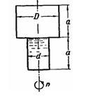Сосуд, вращающийся относительно вертикальной оси, состоит из двух цилиндров одинаковой высоты а = 200 мм и диаметров d=150 мм. и D = 300 мм. Нижний цилиндр целиком заполнен жидкостью. При каком числе оборотов жидкость начнет выливаться из сосуда? Отметить качественное влияние размеров а, d и D сосуда на искомое число оборотов.