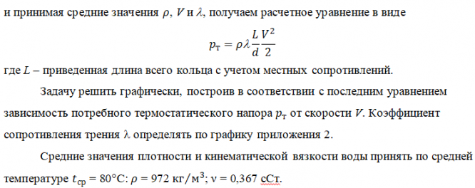 Система водяного отопления с естественной циркуляцией состоит из водогрейного котла, в котором вода нагревается до температуры t_1 = 95C, и кольцевого трубопровода общей длиной l = 16 м и диаметром d = 50 мм, включающего калорифер, где вода охлаждае