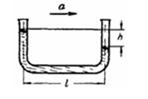 Для измерения ускорения горизонтально движущегося тела может быть использована закрепленная на нем U-образная трубка малого диаметра, наполненная жидкостью. С каким ускорением движется тело, если при движении установилась разность уровней жидкости в ветвях трубки, равная h = 5 см при расстоянии между ними l = 30 см?