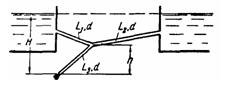 Два резервуара с постоянными и одинаковыми уровнями воды (v = 0,01 Ст) соединены стальными (шероховатость Δ = 0,2 мм) трубами, длины которых L1 = L3 = 50 м, L2 = 200 м и диаметры d =100 мм.