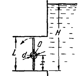 Прямоугольный поворотный затвор размером L*B=2*З м2 перекрывает выход воды из резервуара, уровень в котором равен H = 4 м. Определить: 1) На каком расстоянии х от нижней кромки затвора следует расположить его ось поворота, чтобы для открытия затвора нужно было преодолевать только момент трения в цапфах О. 2) Величину момента трения Мтр, если диаметр цапф d = 150 мм, а коэффициент трения f = 0,2.