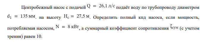 Для студентов по предмету Механика жидкости и газа (МЖГ или Гидравлика)Центробежный насос с подачей подаёт воду по трубопроводу диаметромЦентробежный насос с подачей подаёт воду по трубопроводу диаметром