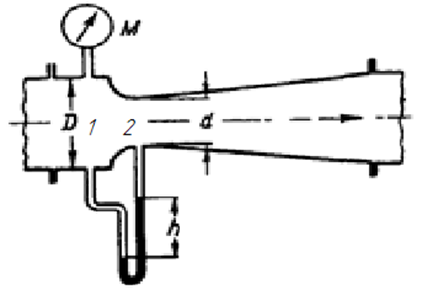 Расход воды в трубопроводе диаметром D = 200 мм измеряется расходомером Вентури. Каков должен быть диаметр сжатого сечения расходомера, чтобы при расходе Q = 50 л/сек показание ртутного дифференциального манометра было не меньше h =160 мм? Каким должно быть при этом наименьшее давление перед расходомером, чтобы в его сжатом сечении не возникало вакуума? Коэффициент сопротивления сужающегося участка расходомера принять равным С =0,04. Ответ. d = 100 мм рмин = 0,2 атм.