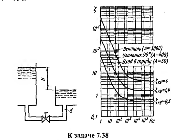 Для студентов МГТУ им. Н.Э.Баумана по предмету Механика жидкости и газа (МЖГ или Гидравлика)Задача 7-38Задача 7-38