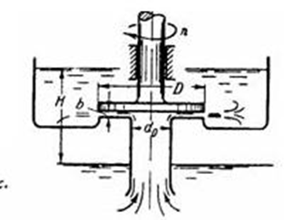 В дисковом (фрикционном) насосе в качестве полезного движущего усилия используется сила трения, возникающая в жидкости при вращении диска. Определить секундную подачу на высоту Н = 1 м, если насос состоит из одного диска, образующего с корпусом зазор b = 1,5 мм и вращающегося с числом оборотов n = 600 об/мин. Вязкость перекачиваемого масла м = 0,8 П плотность р = 900 кг/м3. Размеры D = 350 мм; dо = 80 мм. Скоростными напорами относительного движения входа и выхода пренебречь и принять угловую скорость вращении жидкости равной половине окружной скорости вращения диска.