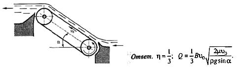 Фрикционная подача масла осуществляется с помощью бесконечного ремня, образующего с горизонтом угол а и движущегося с постоянной скоростью v0 . Ширина ремня равна В. Определить КПД и подачу Q такого насоса, если плотность масла p и его динамическая вязкость См. указание к задаче 8.5.