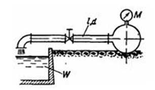 Наполнение бассейна из магистрали с заданным давлением М = 245 кПа производится по горизонтальной трубе общей длиной l = 45 м, снабженной вентилем (ξ = 4) и отводом (ξ = 0,3). Определить диаметр трубы, который обеспечит наполнение бассейна объемом воды W= 36 м3 за время t=30мин. Для коэффициента сопротивления трения воспользоваться формулой (9-21).