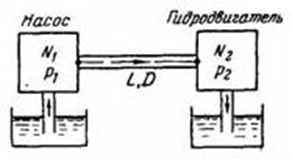 Мощность N1 = 300 кВт. передается потоком воды от насоса к гидродвигателю по горизонтальному трубопроводу длиной l=1500 м. и диаметром D = 400 мм при расходе Q = 0,2 м3/сек. Найти величину мощности, теряемой в трубопроводе, принимая коэффициент сопротивления трения 0,03. Какое давление р1 развивает насос в начале трубопровода и каково давление р2 перед гидродвигателем в конце трубопровода?