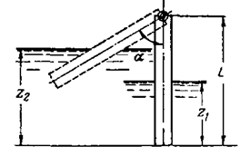 Деревянный брус постоянного сечения (относительный вес δ = 0,75) длиной L = 2м подвешен на шарнире без трения и своим нижним концом погружен в воду. Определить, при какой глубине погружения г, вертикальное положение бруса будет устойчивым. Найти глубину z2, при которой брус будет иметь наклон а= 60 к вертикали.