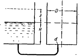 Бак диаметром D = 600 мм заполняется водой из резервуара с неизменным уровнем H = 1,2 м.