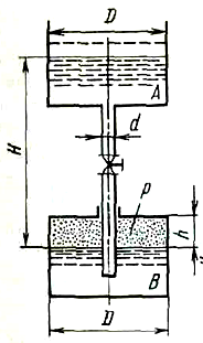 Процесс расширения воздуха в резервуаре и считать изотермическим. Диаметры резервуаров одинаковы: D = 1 м, диаметр трубы d=0,2.
