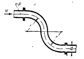 По отводу типа «утки», диаметр которого d = 200 мм. и радиус закругления r = 600 мм, протекает вода в количестве Q = 125 л/сек под давлением р = 200 кПа.