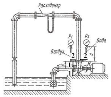Вертикальное расстояние между входным и выходным сечениями насоса h = 8см;