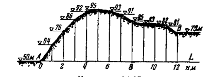 Из пункта А в пункт В необходимо перекачивать воду в количестве Q = 250 м3/ч по стальному трубопроводу диаметром d =150 мм и длиной l = 14 км (шероховатость Δ = 0,2 мм) профиль трассы показан на рисунке