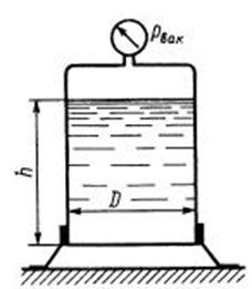 В сосуде находится расплавленный свинец (р=11 г/см3). Определить силу давления, действующую на дно сосуда, если высота уровня свинца h = 500 мм, диаметр сосуда D=400 мм, показание мановакуумметра Pвак = 30 кПа.