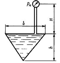 Для студентов МГТУ им. Н.Э.Баумана по предмету Механика жидкости и газа (МЖГ или Гидравлика)Определить силу, действующую на каждую из четырех стенок сосуда, имеющего форму перевернутой правильной пирамиды, если Pм = 0,5 МПа, H=4 м и h = 1,2 мОпределить силу, действующую на каждую из четырех стенок сосуда, имеющего форму перевернутой правильной пирамиды, если Pм = 0,5 МПа, H=4 м и h = 1,2 м