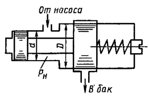 Определить величину предварительного поджатия пружины дифференциального предохранительного клапана (мм), обеспечивающую начало открытия клапана при Pн = 0,8 МПа. Диаметры клапана: D = 24 мм, d=18 мм; жесткость пружины с = 6 Н/мм. Давление справа от большого и слева от малого поршней - атмосферное.