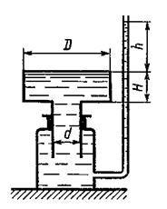 Для студентов МГТУ им. Н.Э.Баумана по предмету Механика жидкости и газа (МЖГ или Гидравлика)Определить высоту h столба воды в пьезометрической трубке. Столб воды уравновешивает полый поршень D = 0,5 м и d = 0,2 м, имеющий высоту H = 0,3 м. СоОпределить высоту h столба воды в пьезометрической трубке. Столб воды уравновешивает полый поршень D = 0,5 м и d = 0,2 м, имеющий высоту H = 0,3 м. Со