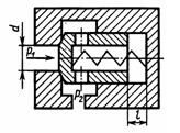 Обратный клапан диаметром d= 20 мм служит для пропуска жидкости (р = 900 кг/м3) только в одном направлении. Определить перепад давления P = P1 – P2 на клапане, если P1 = 1,6 МПа. Жесткость пружины с = 13 Н/мм, ее предварительное поджатие y0 = 8 мм, максимальный ход клапана l = 3 мм, коэффициент расхода μ = 0,8, объемный расход Q = 1 л/с.