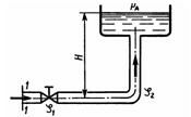 Определить расход в трубе для подачи воды (вязкость v = 0,01 Ст) на высоту H=16,5 м, если диаметр трубы d = 10 мм; ее длина l = 20 м; располагаемый напор в сечении трубы перед краном Hрасп = 20 м; коэффициент сопротивления крана ξ1=4, колена ξ2=1. Трубу считать гидравлически гладкой.
