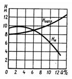 Центробежный насос работает с частотой вращения n1 = 1500 об/мин и перекачивает жидкость по трубопроводу, для которого задана кривая потребного напора Hпотр=f(Q) (см. рис.). На том же графике дана характеристика насоса Hн при указанной частоте вращения. Какую частоту вращения нужно сообщить данному насосу, чтобы увеличить подачу жидкости в два раза?